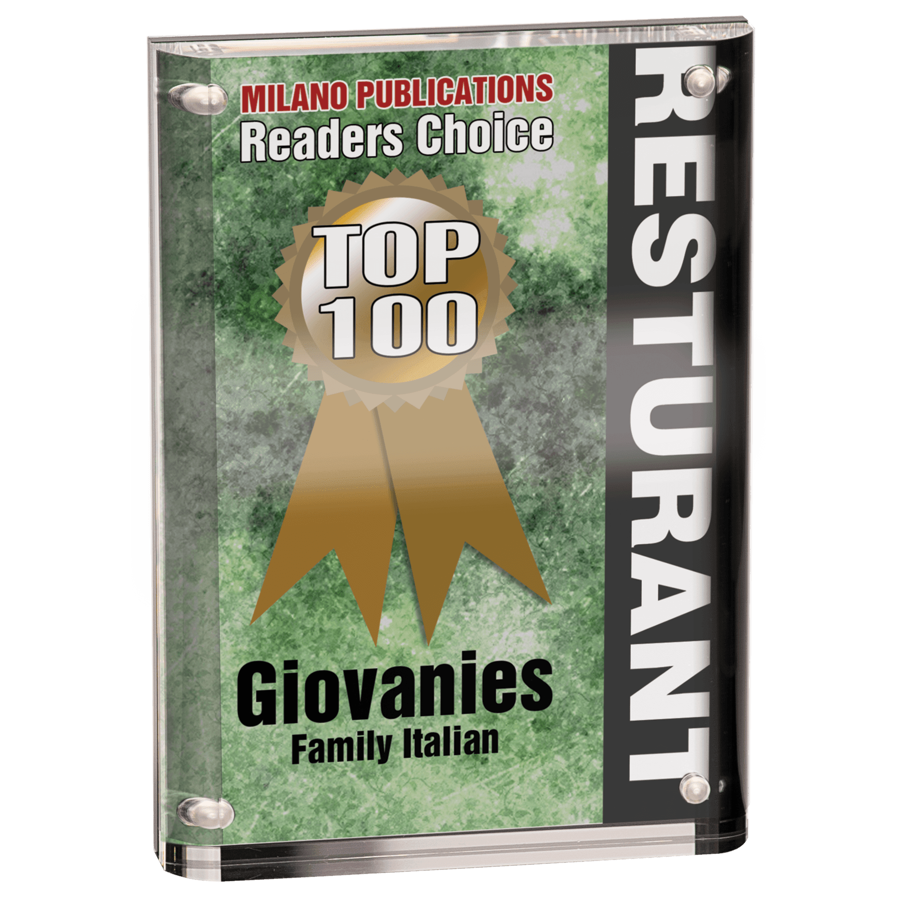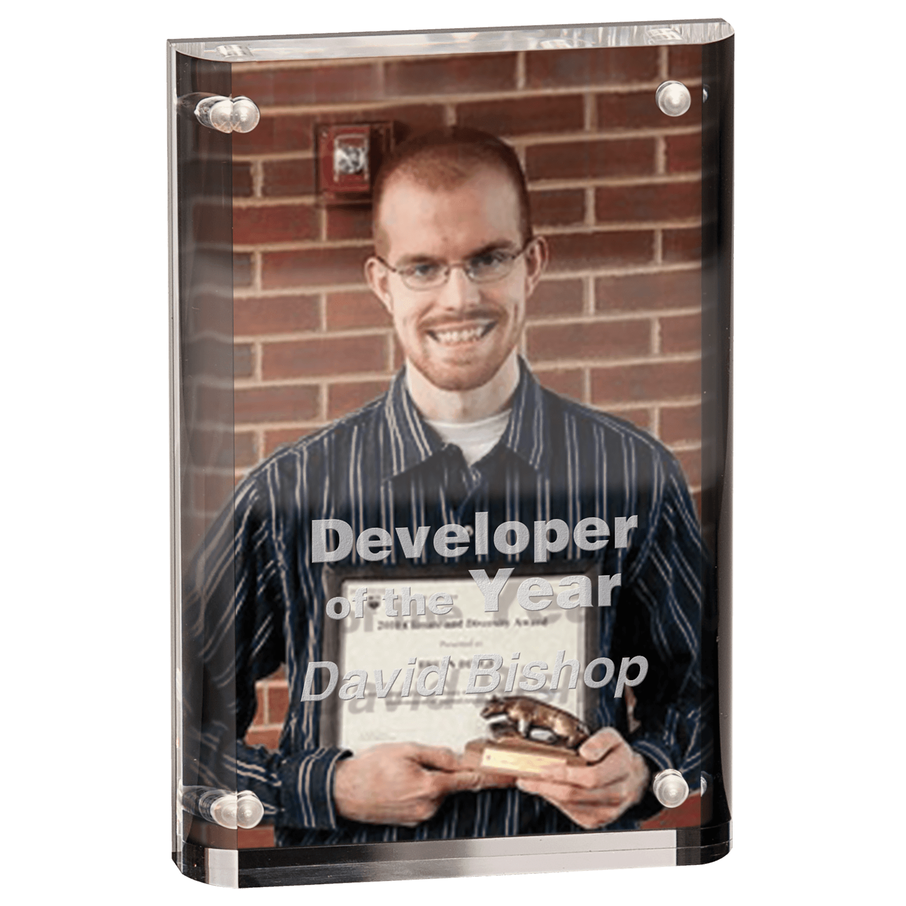 Magnetic Acrylic Awards feature a distinctive 1" thick design with front and back pieces that magnetically attach, forming a striking three-dimensional display. These self-standing awards combine durability with elegance, making them ideal for showcasing achievements. Available in three sizes, they offer versatile options to suit various recognition needs.