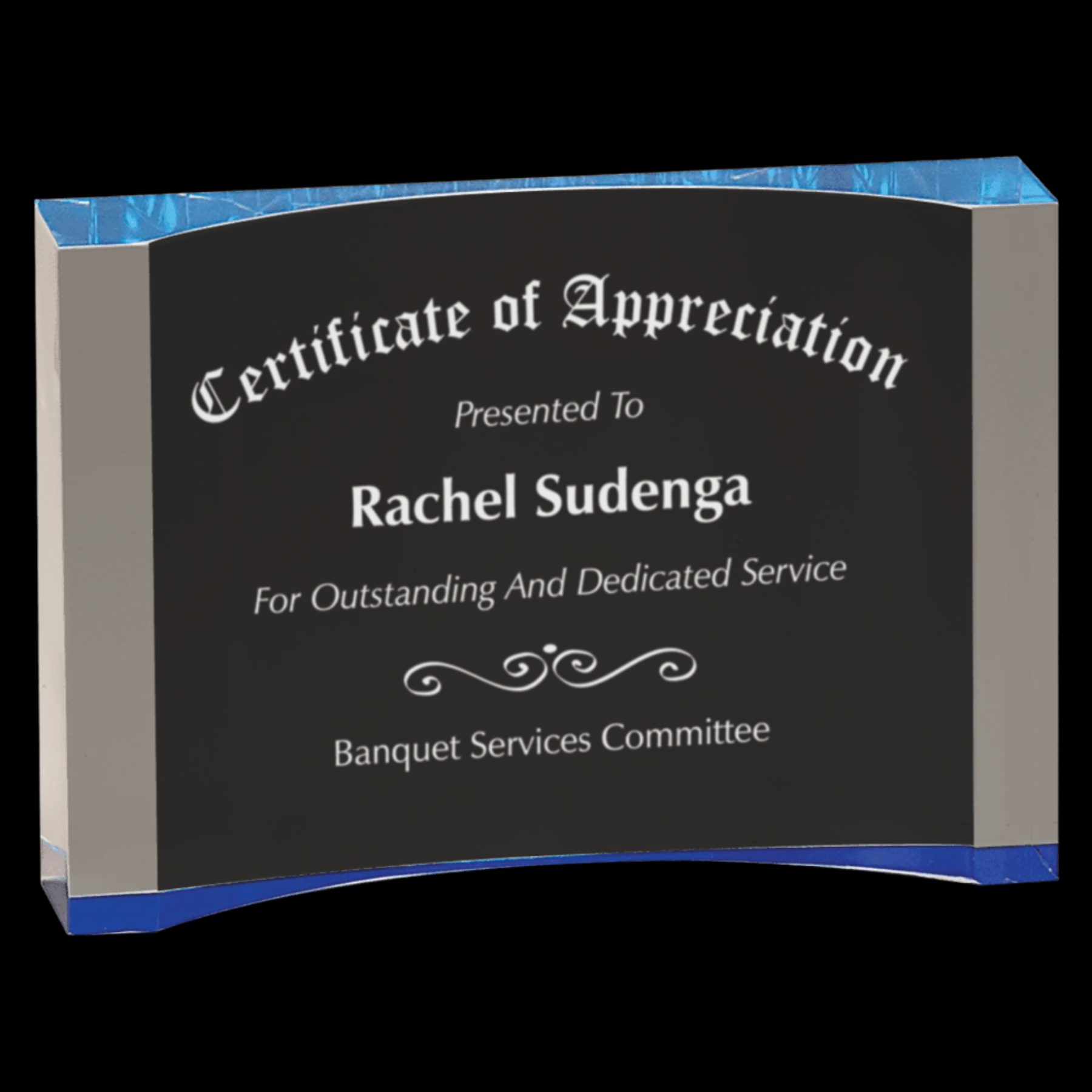 These Crescent Acrylics are 1" Thick on the Ends and are Self-Standing. Available in Multiple Colors and Sizes.