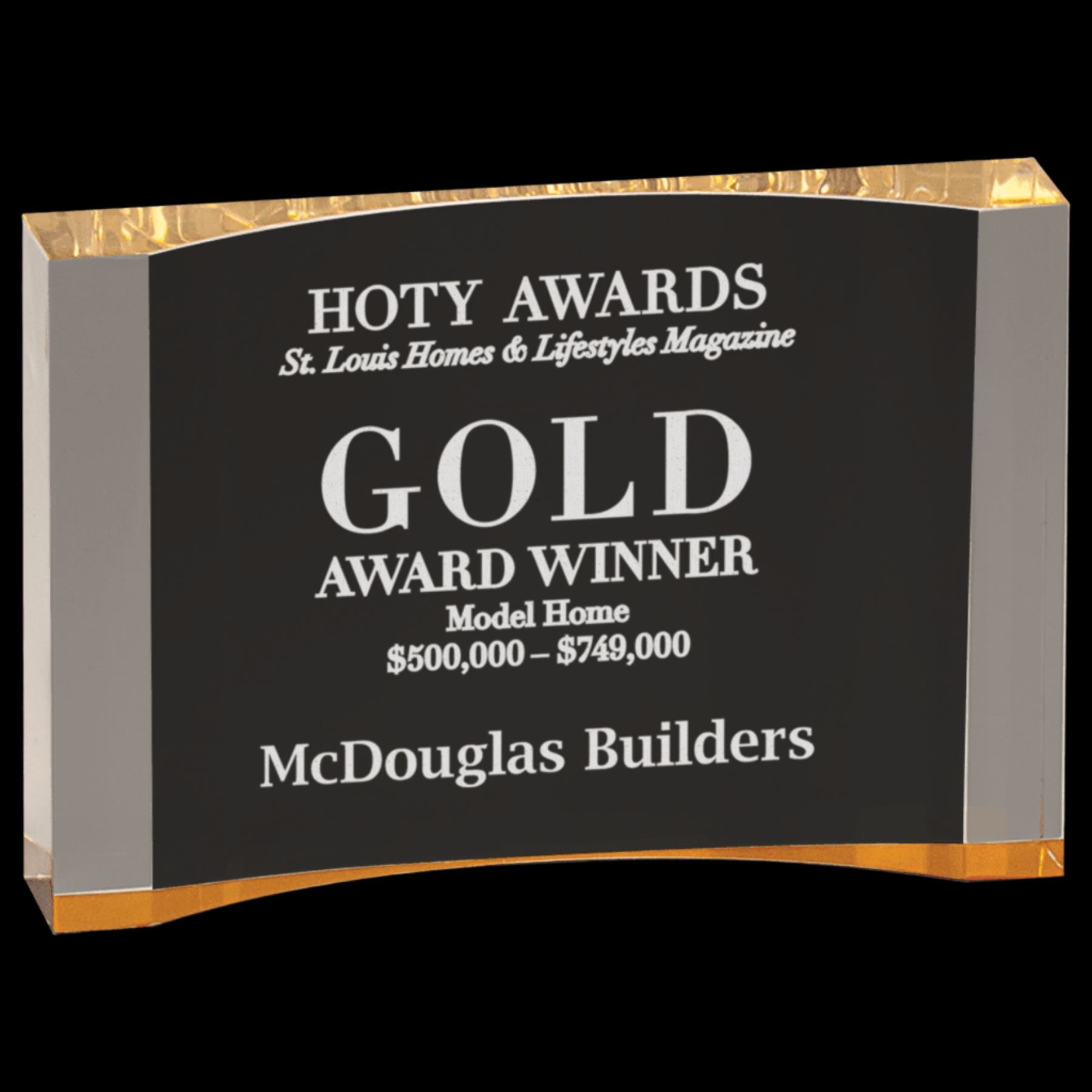 These Gold Acrylic Crescents feature a robust 1" thickness at the ends, providing excellent stability for self-standing display. Available in multiple sizes and colors, they offer versatile options for professional presentations or creative projects requiring durable, eye-catching acrylic elements.