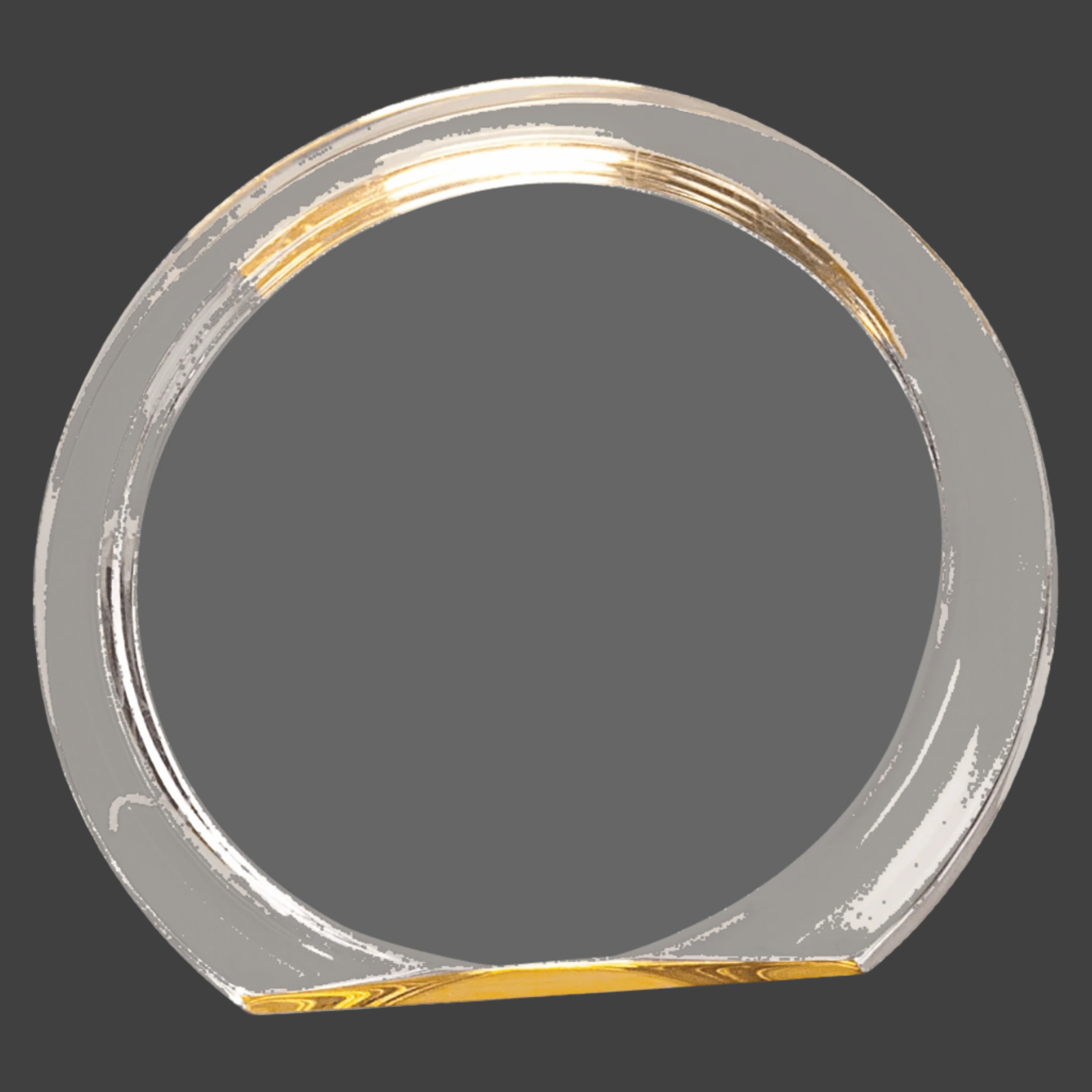 Crafted from 1" thick acrylic, the Gold Round Halo Acrylic offers durability and a sleek, modern aesthetic. Available in multiple styles and colors, it provides versatile options for professional displays or decorative purposes, combining sturdy construction with elegant design.