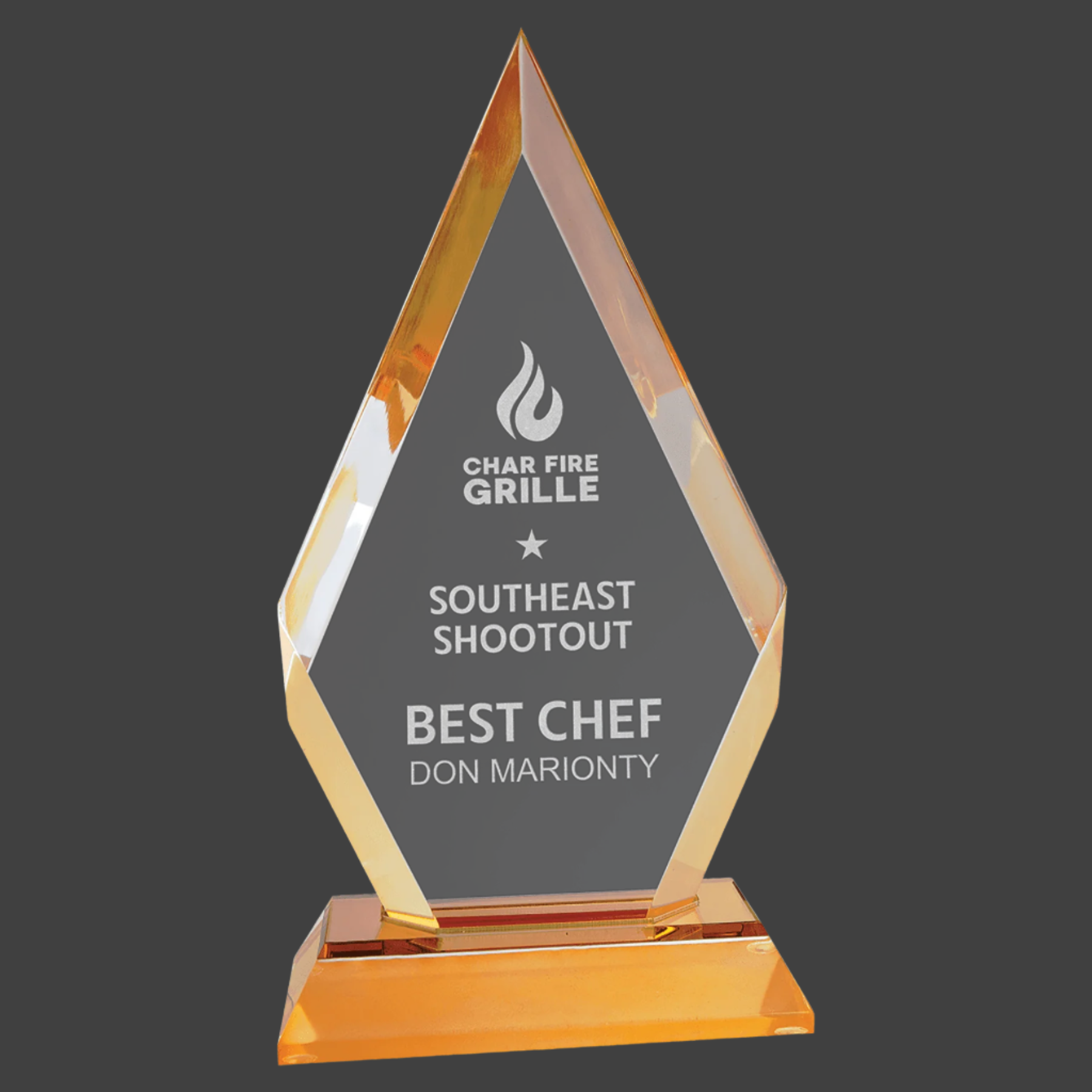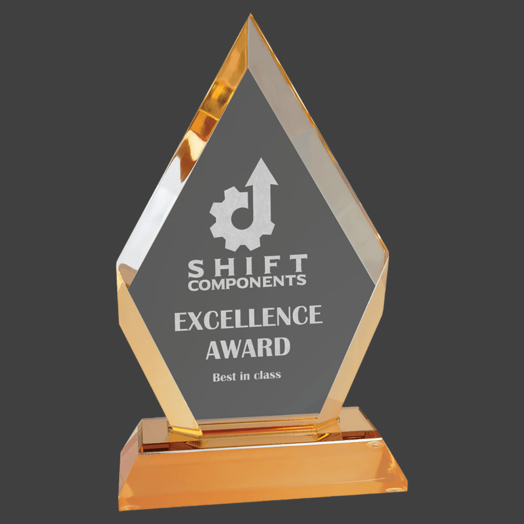Gold Frosted Base Diamond Impress Acrylics feature a distinctive frosted base with a clear acrylic engraving area, providing a striking contrast for detailed designs. At 1" thick, these acrylics offer durability and a premium feel, ideal for professional displays and custom projects requiring both elegance and clarity.