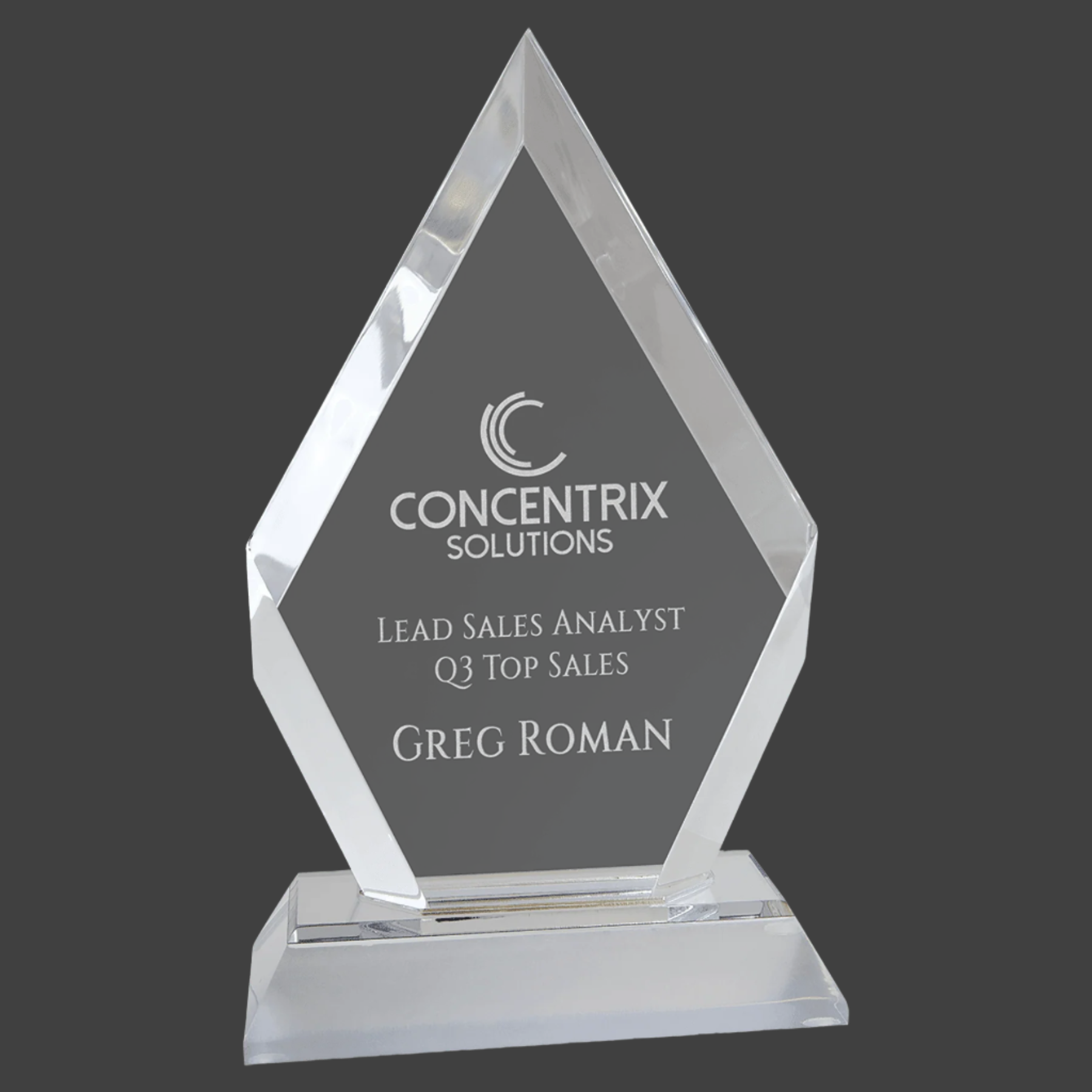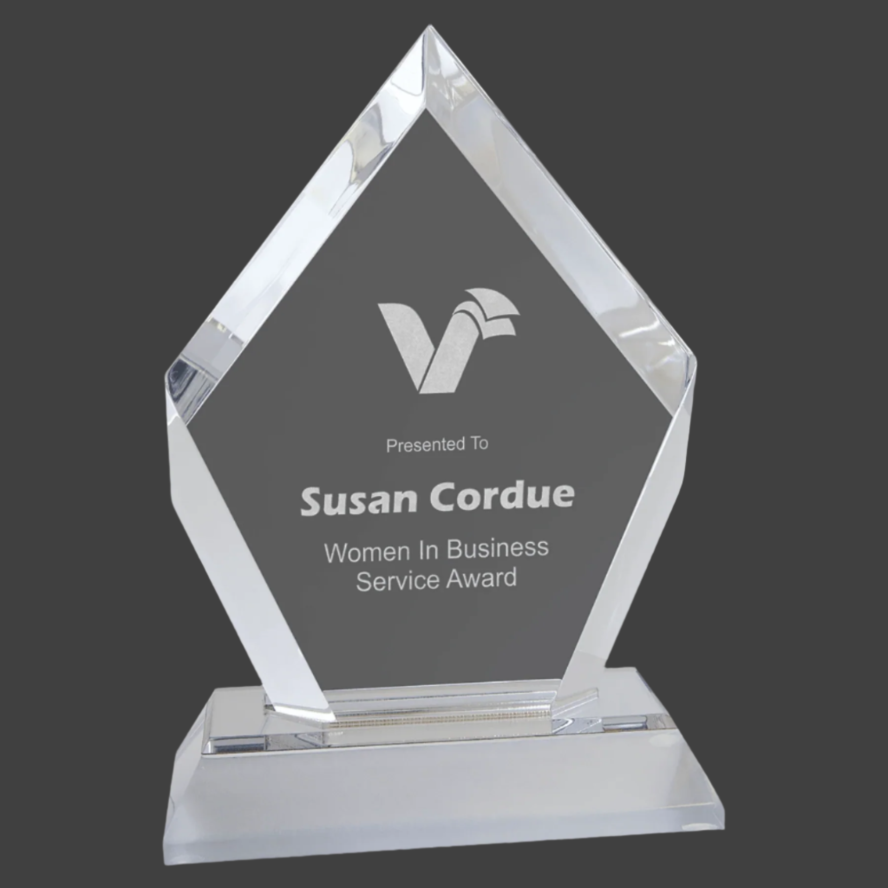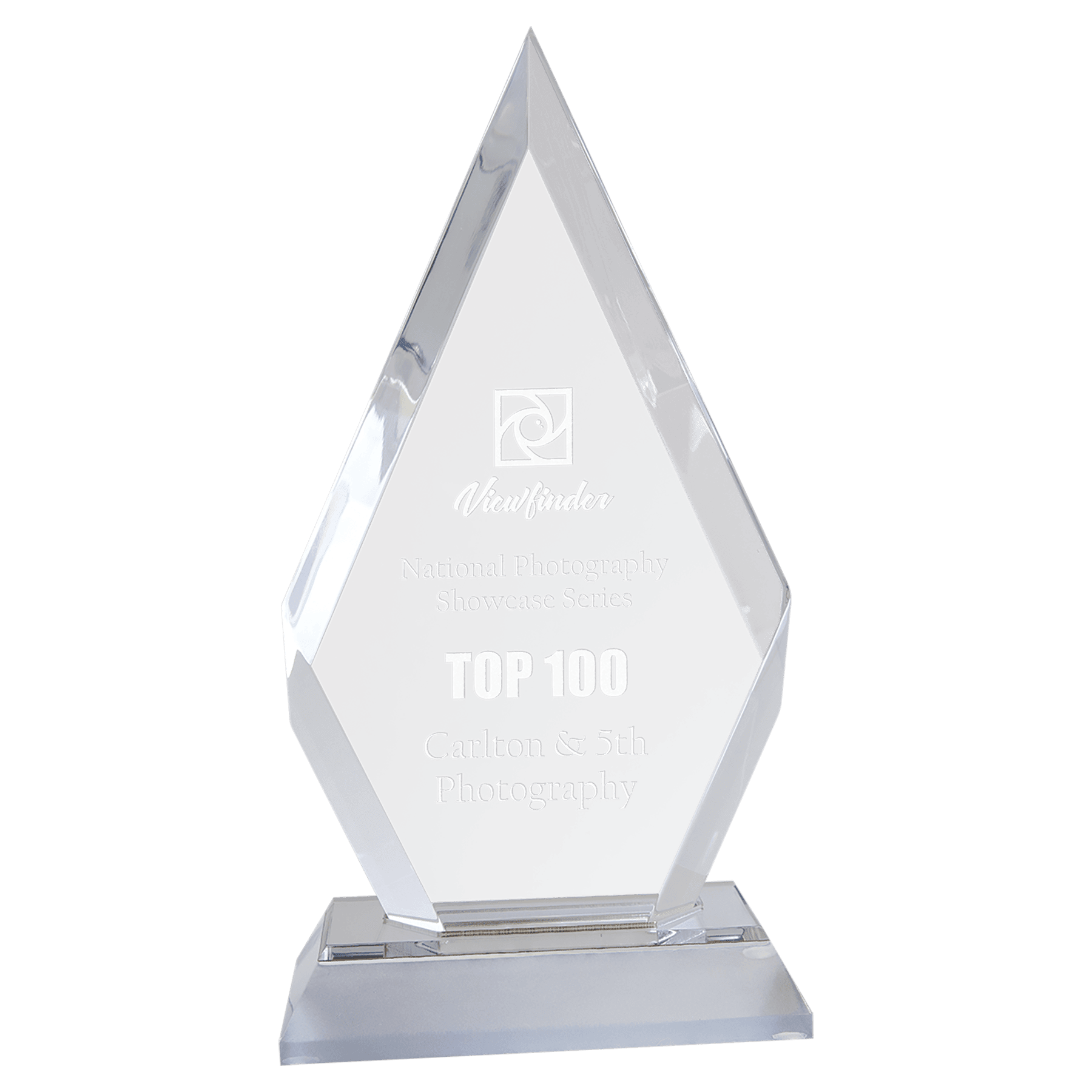 Silver Frosted Base Diamond Impress Acrylics feature a distinctive 1" thick frosted base that enhances visual depth and elegance. The clear acrylic engraving area provides a sharp, precise surface ideal for detailed designs and professional-quality personalization. This combination ensures both durability and a unique aesthetic, making it an excellent choice for sophisticated displays and custom projects.