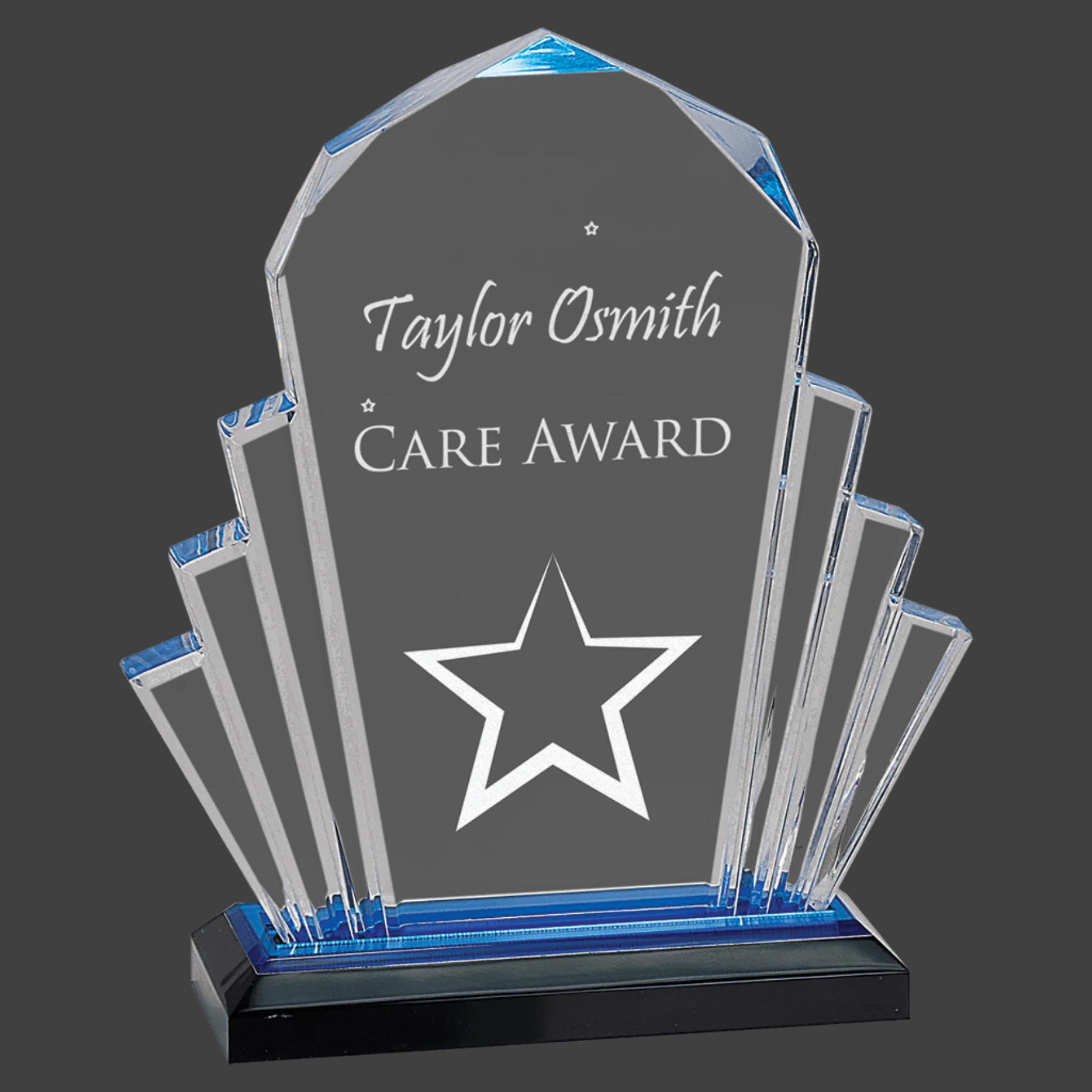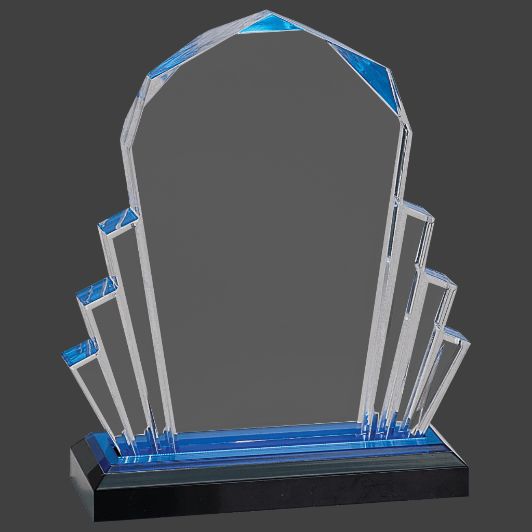Faceted Impress Acrylics Come with a Colored Mirror Base. They are 1" Thick. Height Measurement Includes Base. Available in Multiple Different Sizes and Colors.