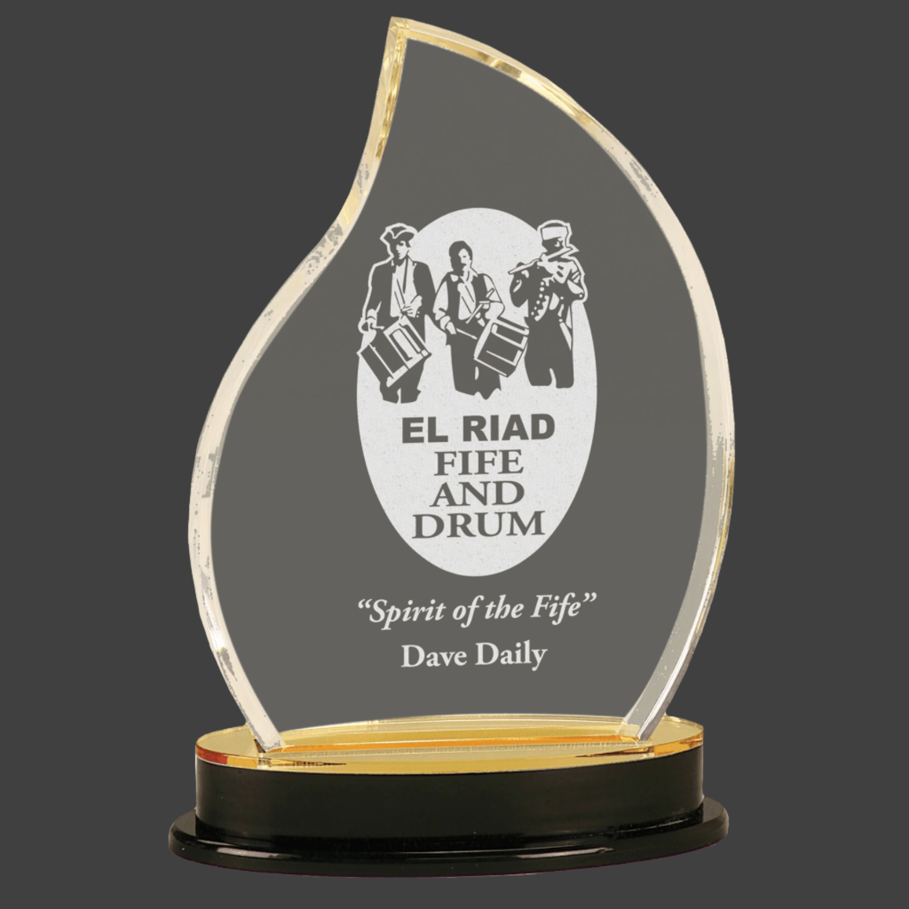 Flame Impress Acrylics feature a vibrant colored mirror base, enhancing their visual impact. With a thickness of 0.75 inches, the total size includes the base for precise fitting. Available in various sizes and colors, the Gold Flame Impress Acrylic offers a striking, durable option for sophisticated displays or decorative applications.