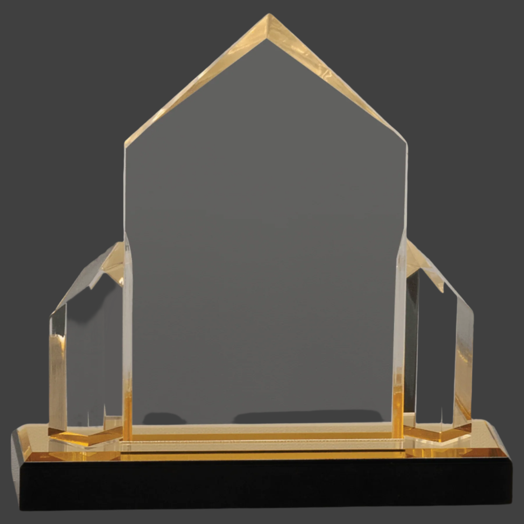 Gold Jewel Post Impress Acrylic features a colored mirror base and measures 0.5" thick, with height including the base. Available in various sizes and colors, this product offers versatile options for professional display needs.