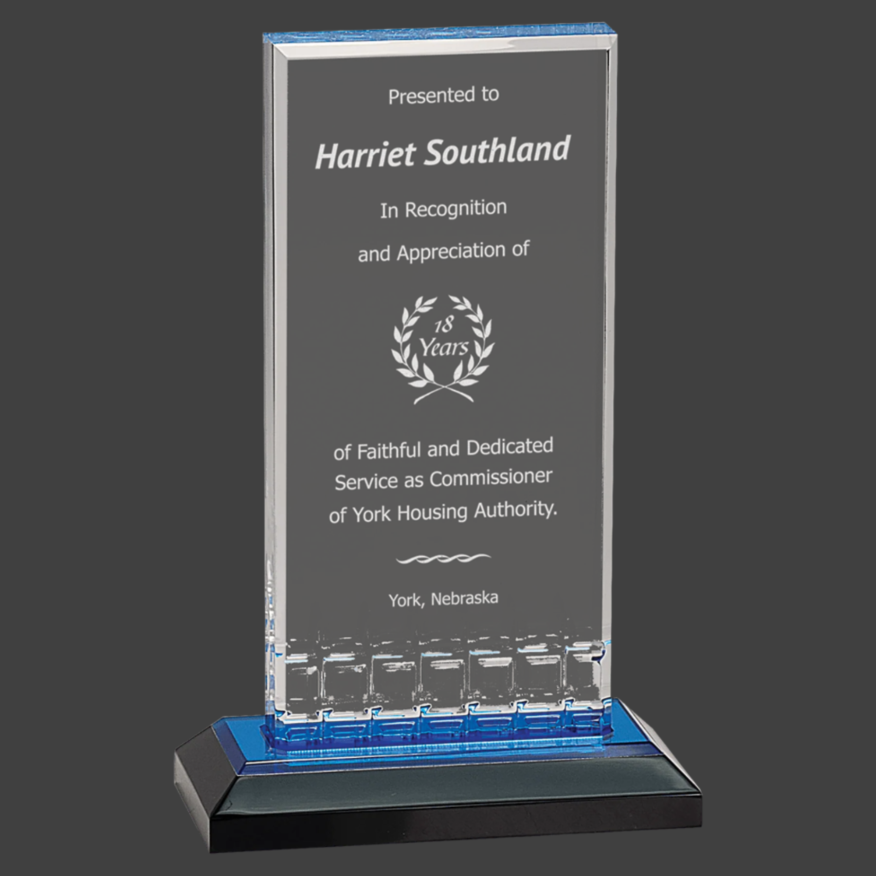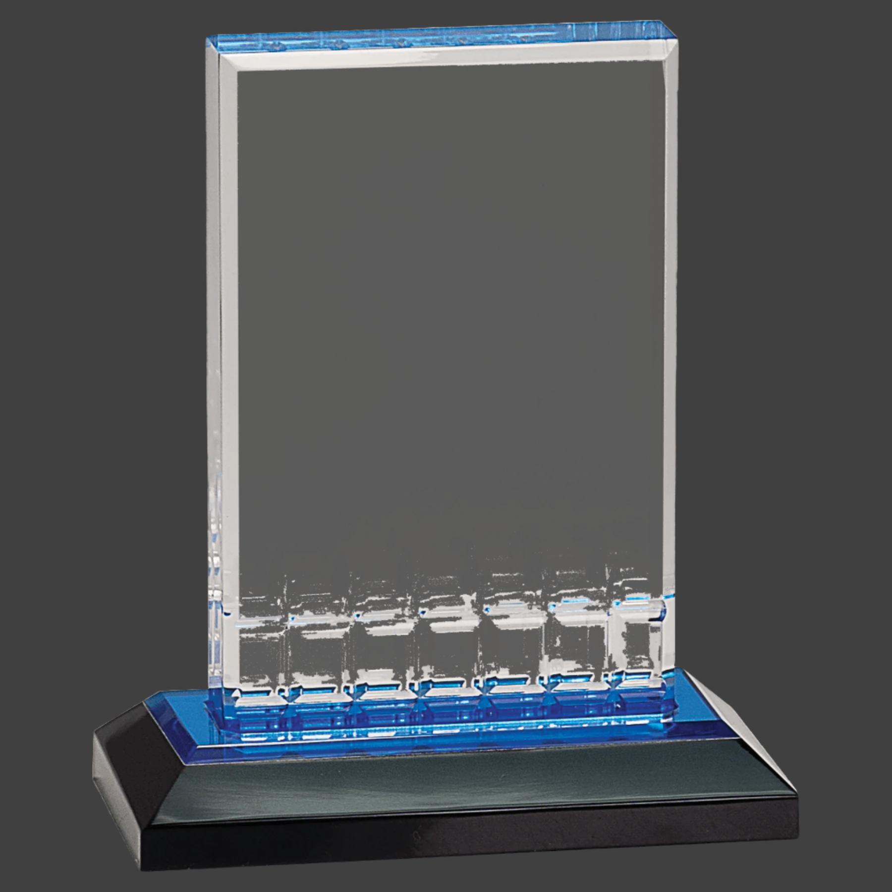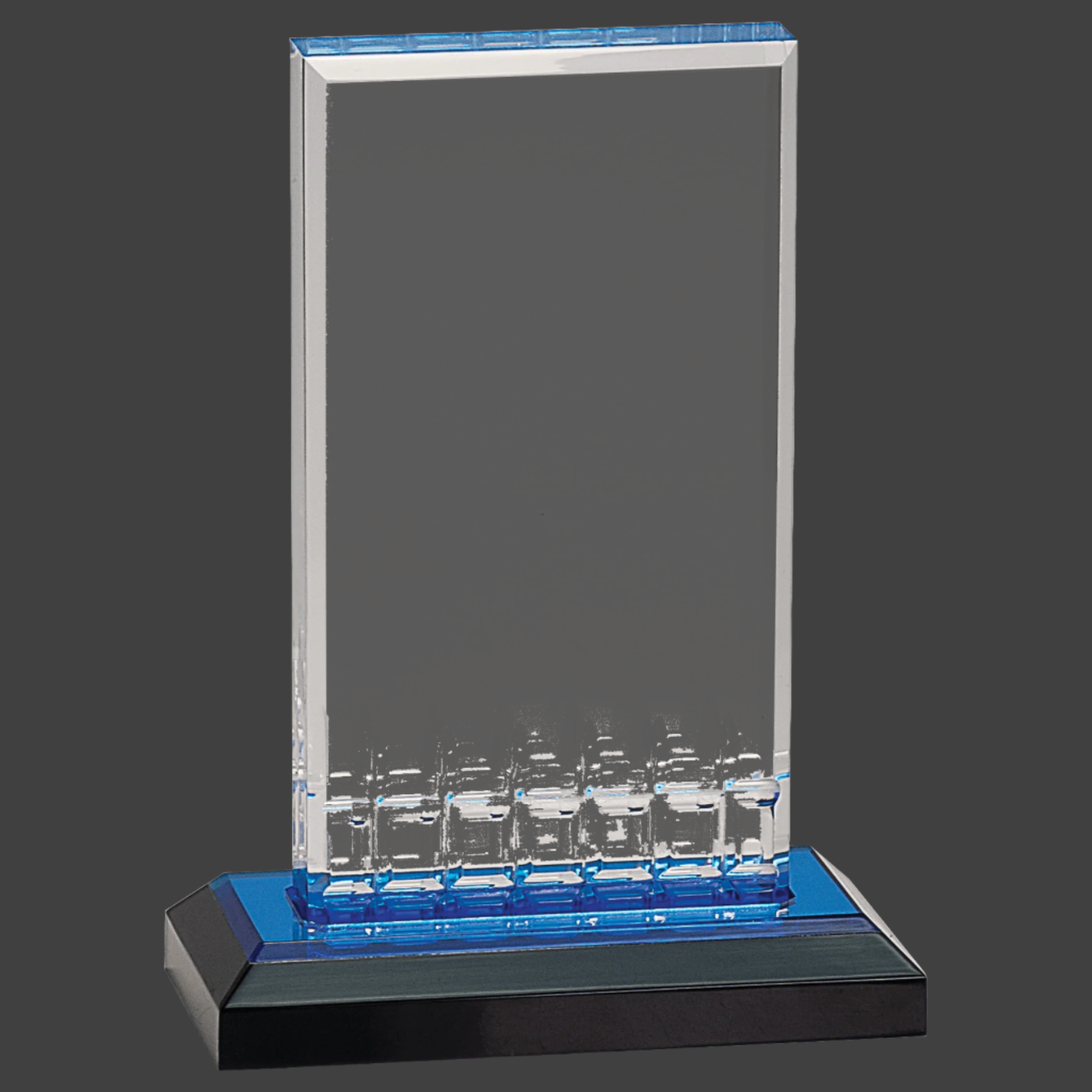 Mirage Impress Acrylics Come with a Colored Mirror Base. They are 1" Thick. Height Measurement Includes Base. Available in Multiple Colors and Sizes.