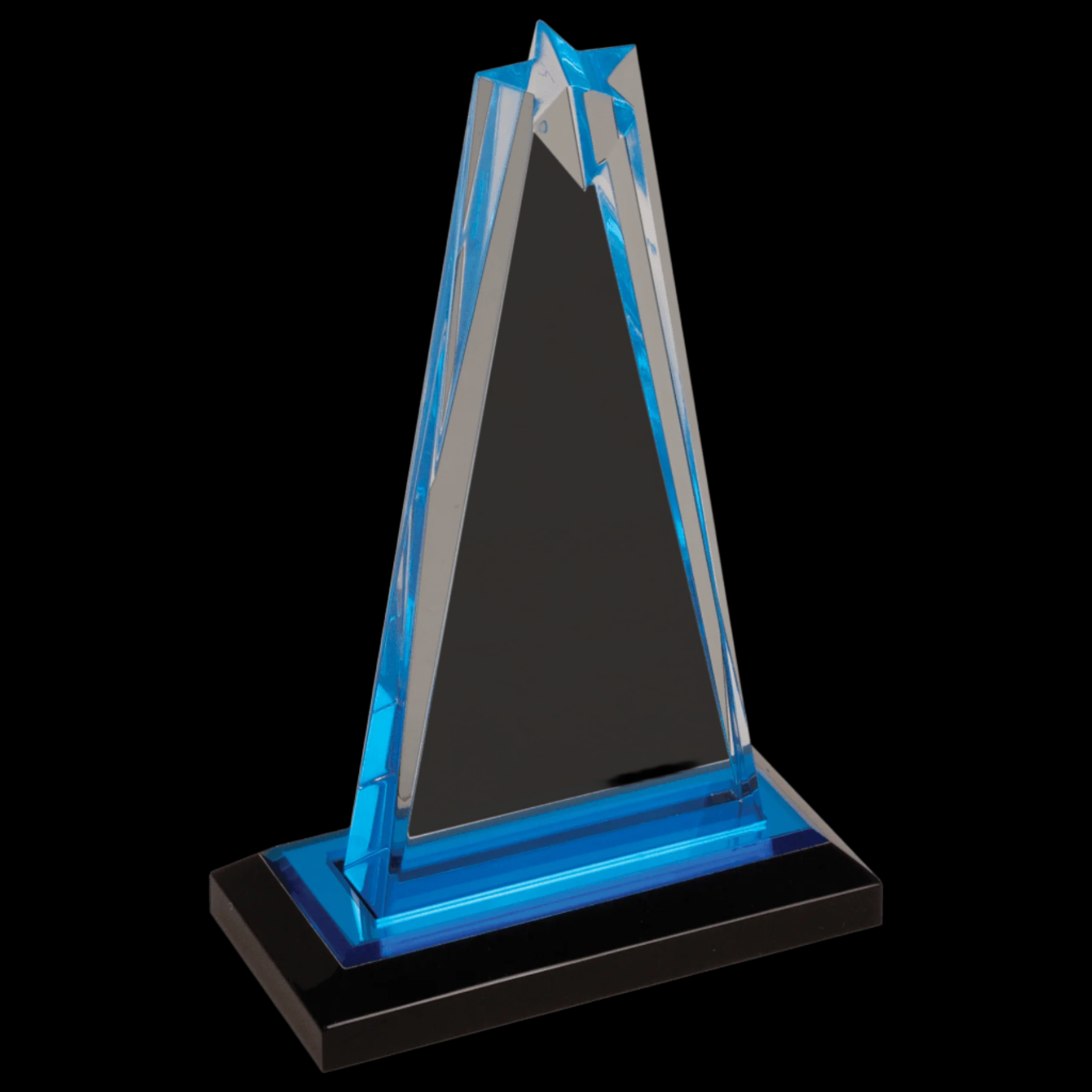 Star Impress Acrylics feature a vibrant colored mirror base and a 1" thick acrylic panel, with the total height including the base. Blue Star Impress Acrylic offers a striking visual impact ideal for professional displays and presentations. Its durable construction ensures lasting quality while the colored mirror base enhances depth and brilliance.