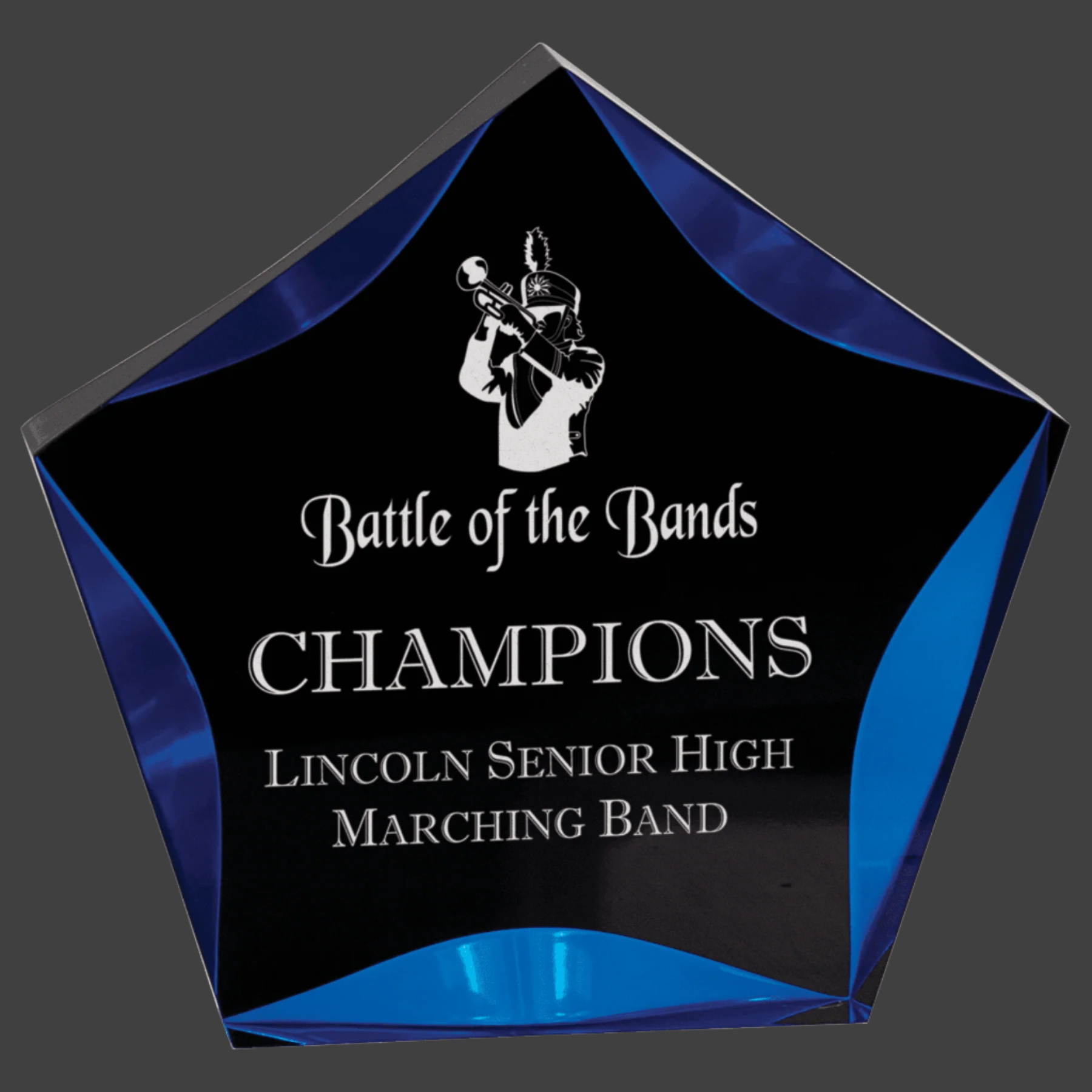 Luminary Star Acrylics are Self-Standing and 1" Thick. Available in Multiple Sizes, Styles, and Colors.