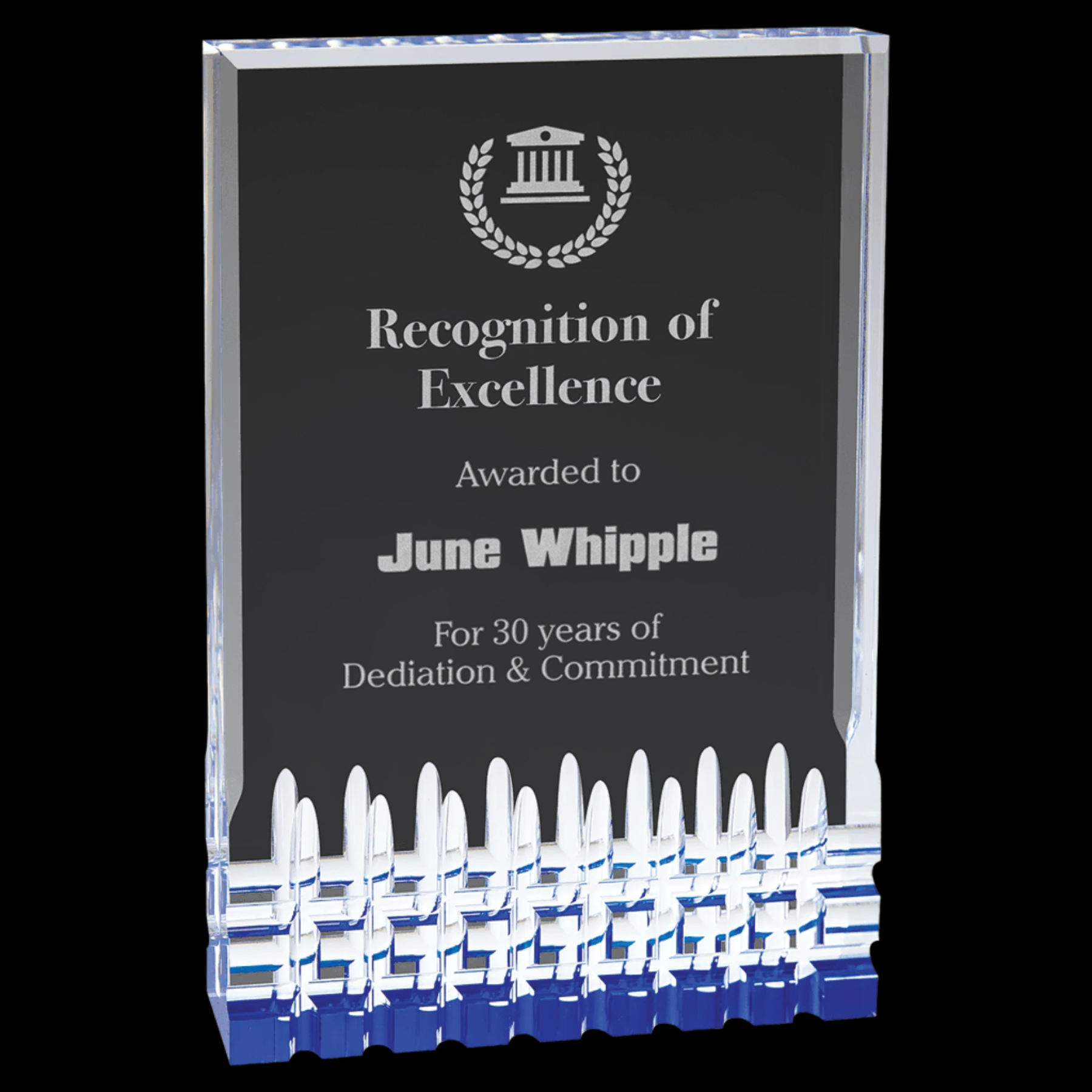 Great quality on the award. Clean engraving. And delivered in a decent amount of time.