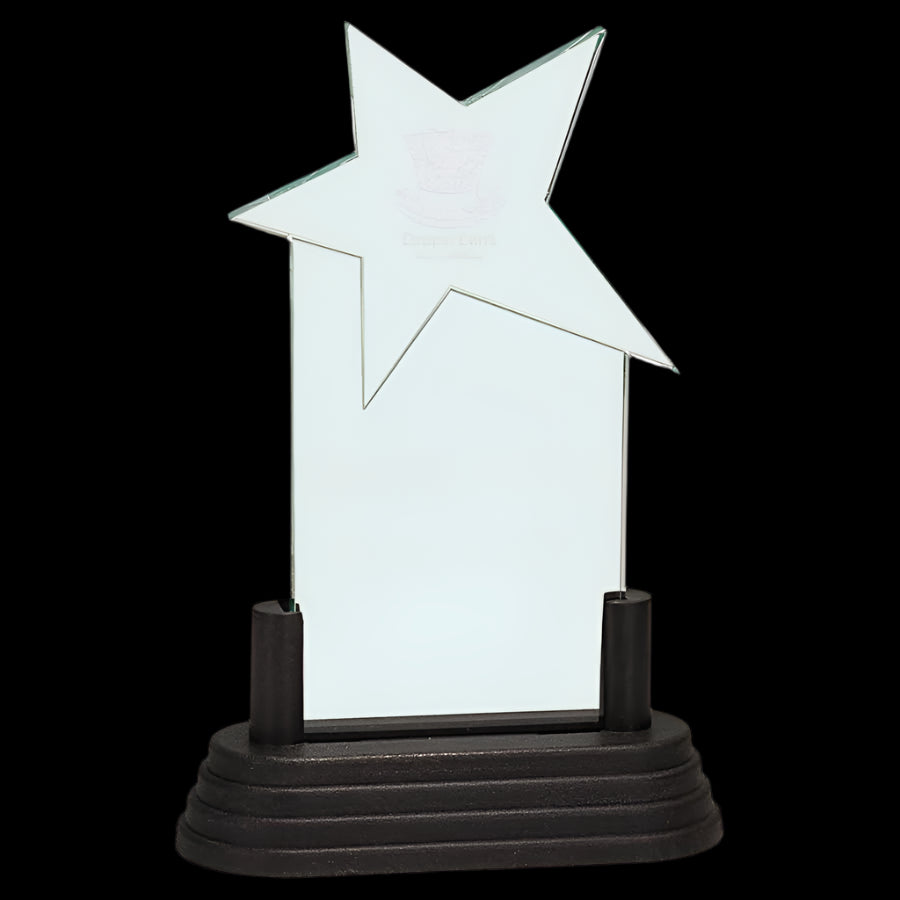 Jade Star Pop-In Acrylic offers a sleek, professional award solution with easy assembly. Crafted from .375" thick clear acrylic, it securely pops into a compatible base (sold separately), providing a polished and customizable display. Ideal for recognizing achievements with a modern touch.