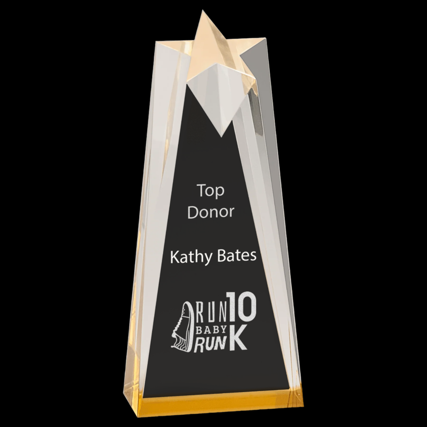 Sculpted Star Acrylics are Self-Standing and 2" Thick. Available in Multiple Sizes and Colors.