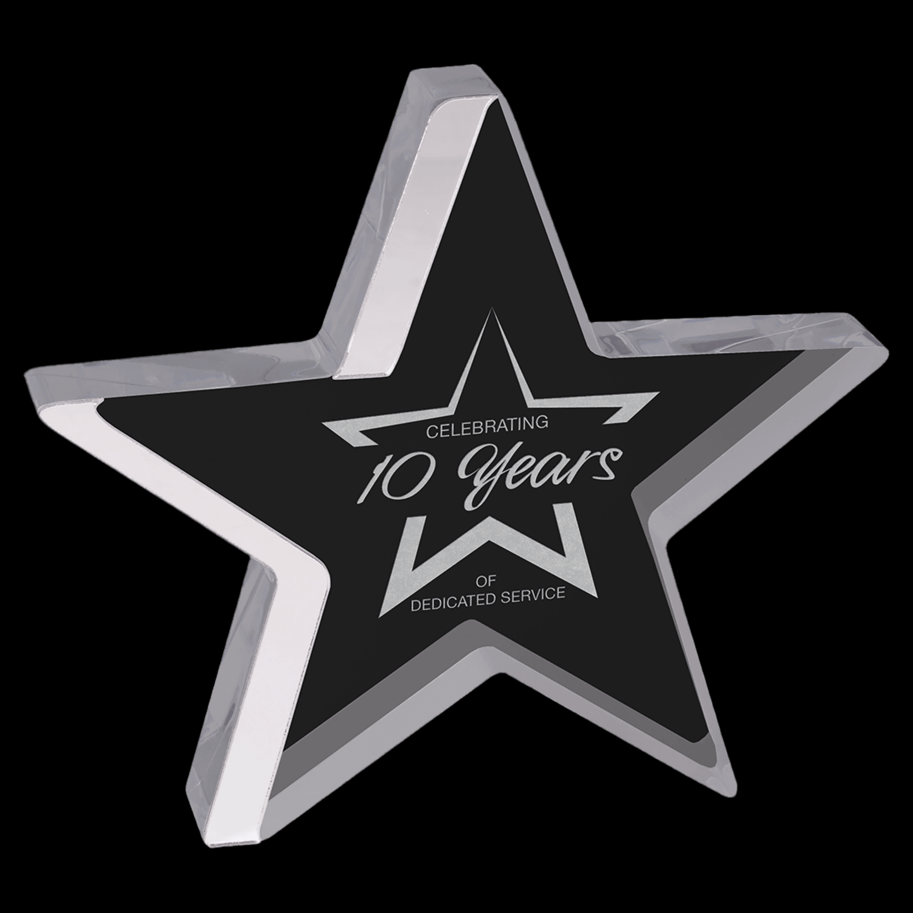 The Star Acrylic with Silver Edge award features a striking 1-inch thickness and a self-standing design, ensuring stability and a premium presence. Its silver-edged detail enhances the star shape, making it an elegant choice for recognizing outstanding achievements with a modern, professional look.