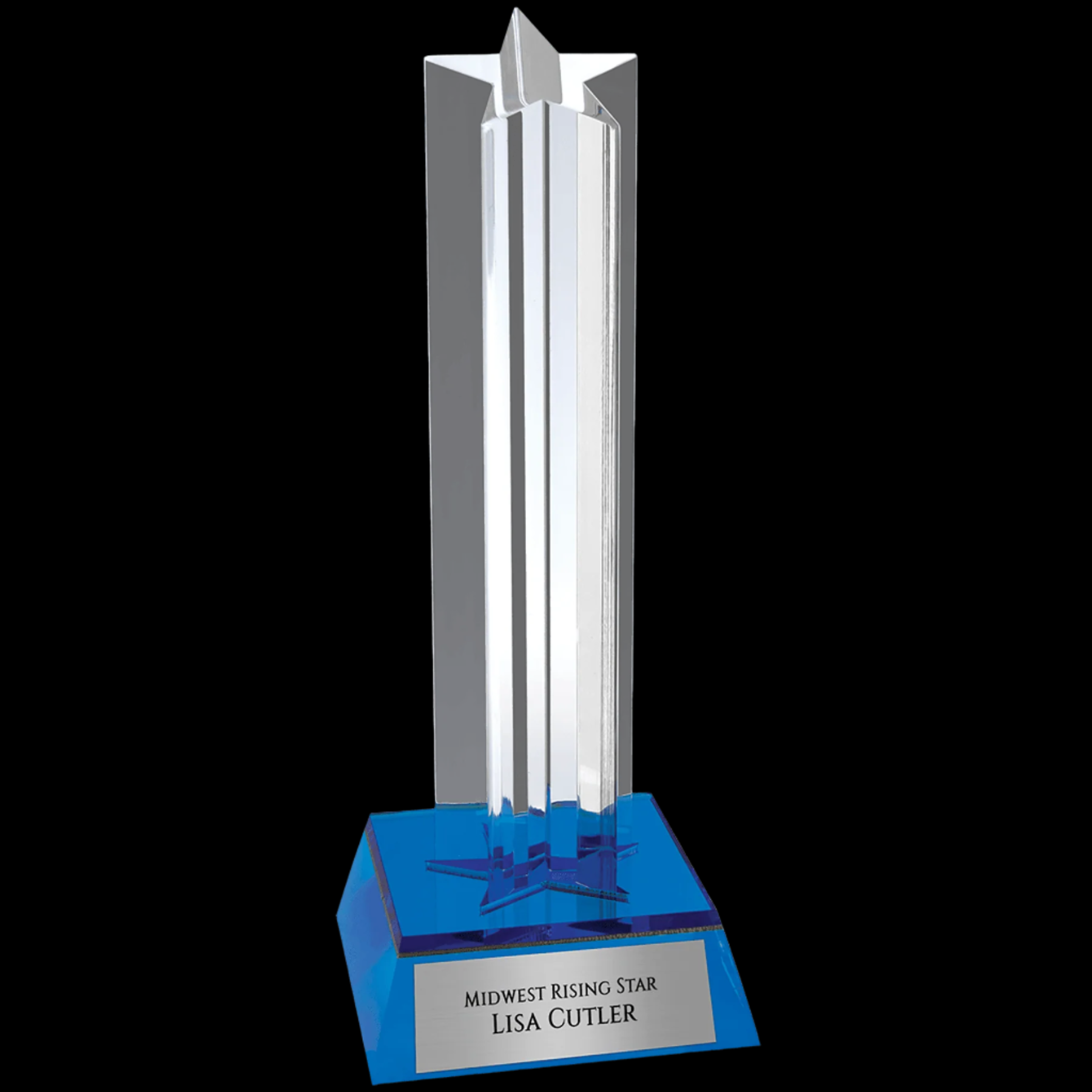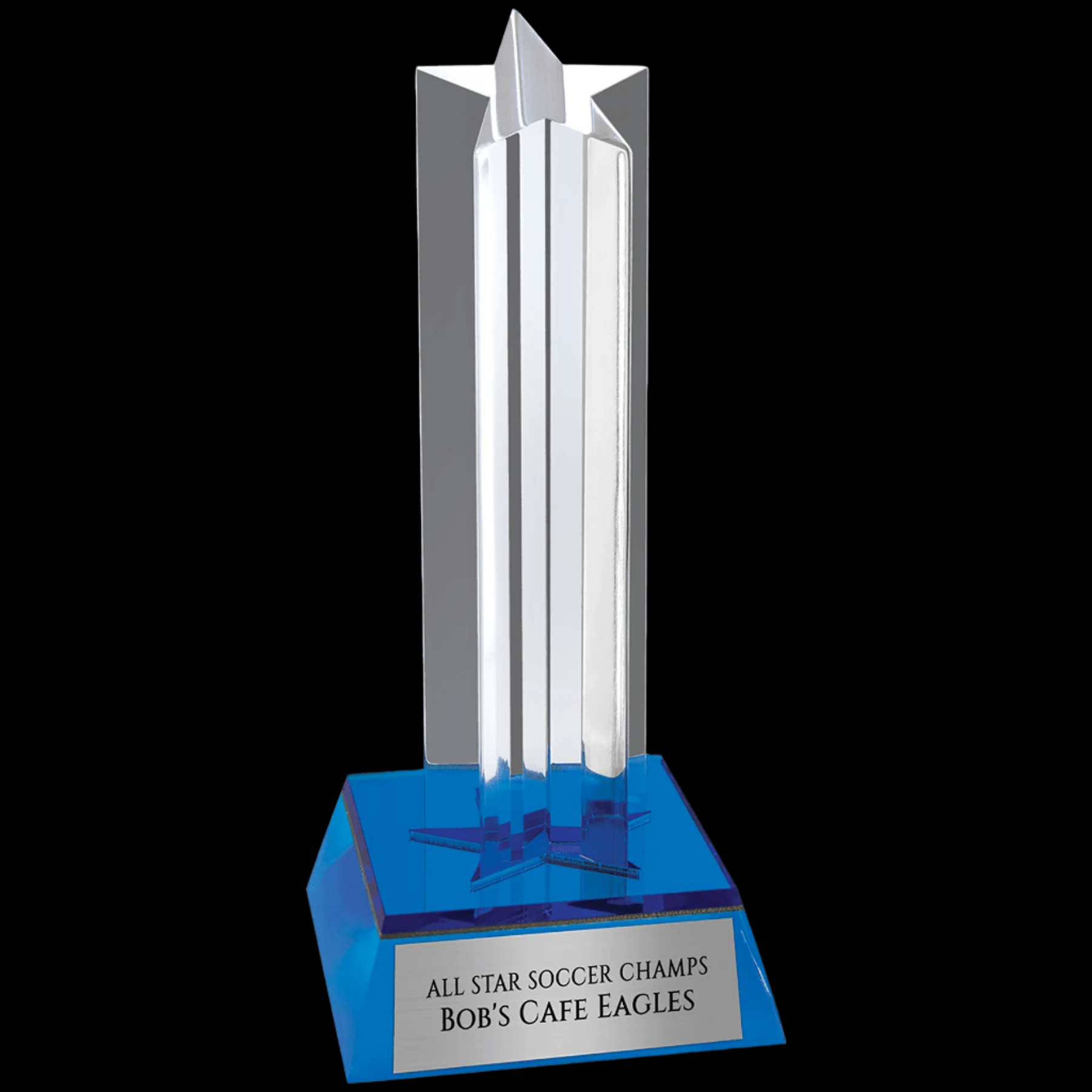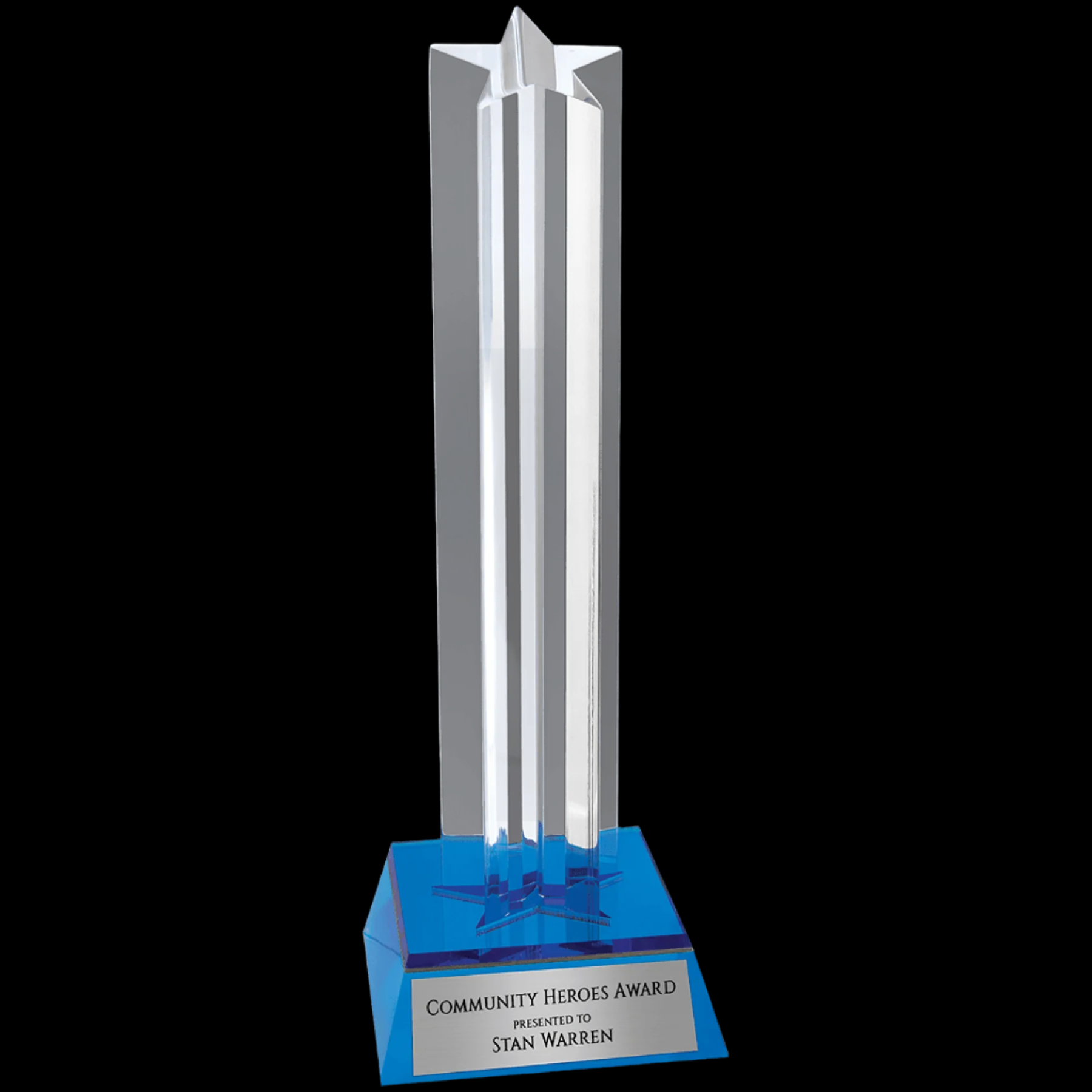 Star Column Acrylics offer a sophisticated recognition piece suitable for any event. This Blue Star Column Acrylic features a clear star-shaped column that elegantly highlights the vibrant blue base, creating a striking visual contrast. Crafted for durability and style, it serves as a distinguished award that enhances the significance of your achievements.