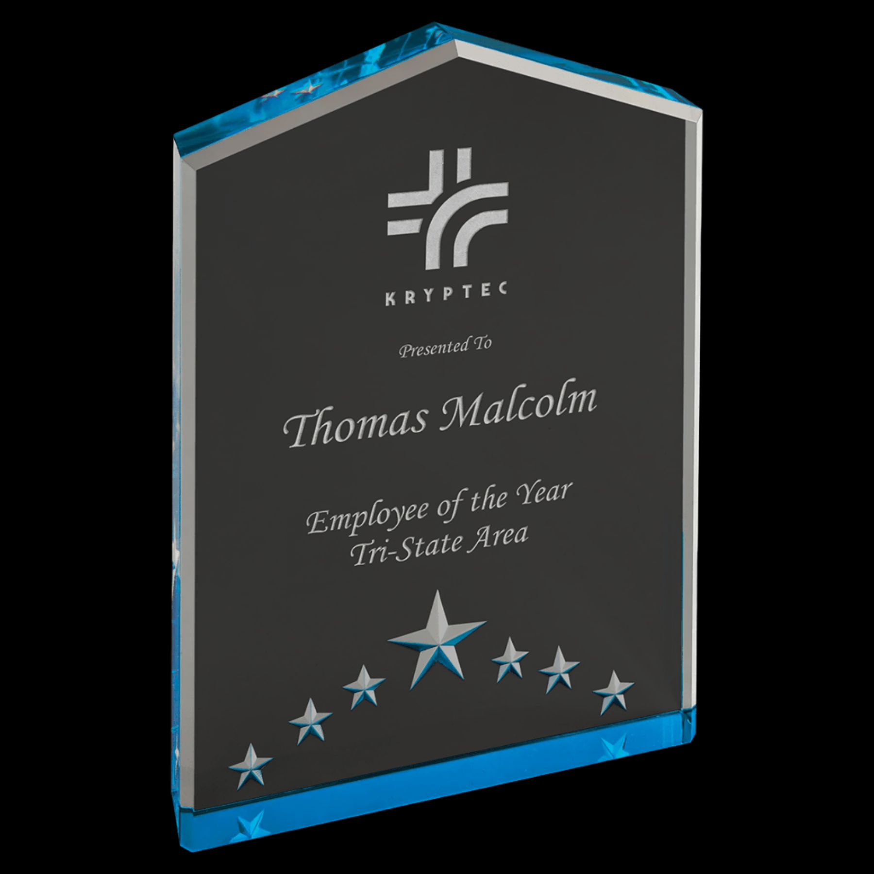 Star Point Acrylics are expertly crafted 1-inch thick awards designed to stand independently. The Blue Star Point Acrylic combines durability with a sleek, professional appearance, making it an ideal choice for recognizing outstanding achievements with lasting impact.