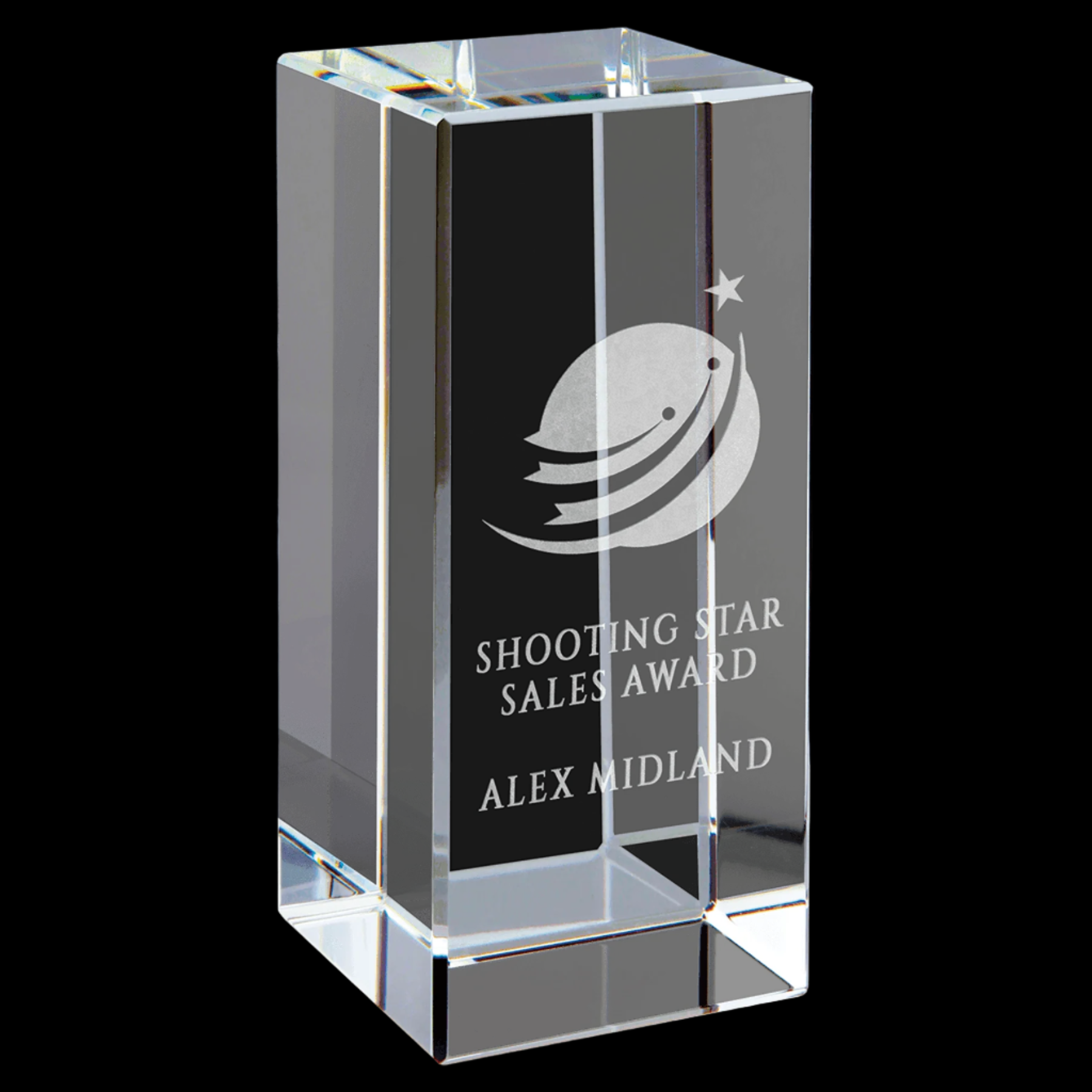Our Crystal Awards are Handmade and May Vary Slightly in Size. Optic Crystal Clear Block Makes a Bold Statement, As It Stands Alone. Double-Sided For Unique Personalization. Packaged in a Lined Gift Box.