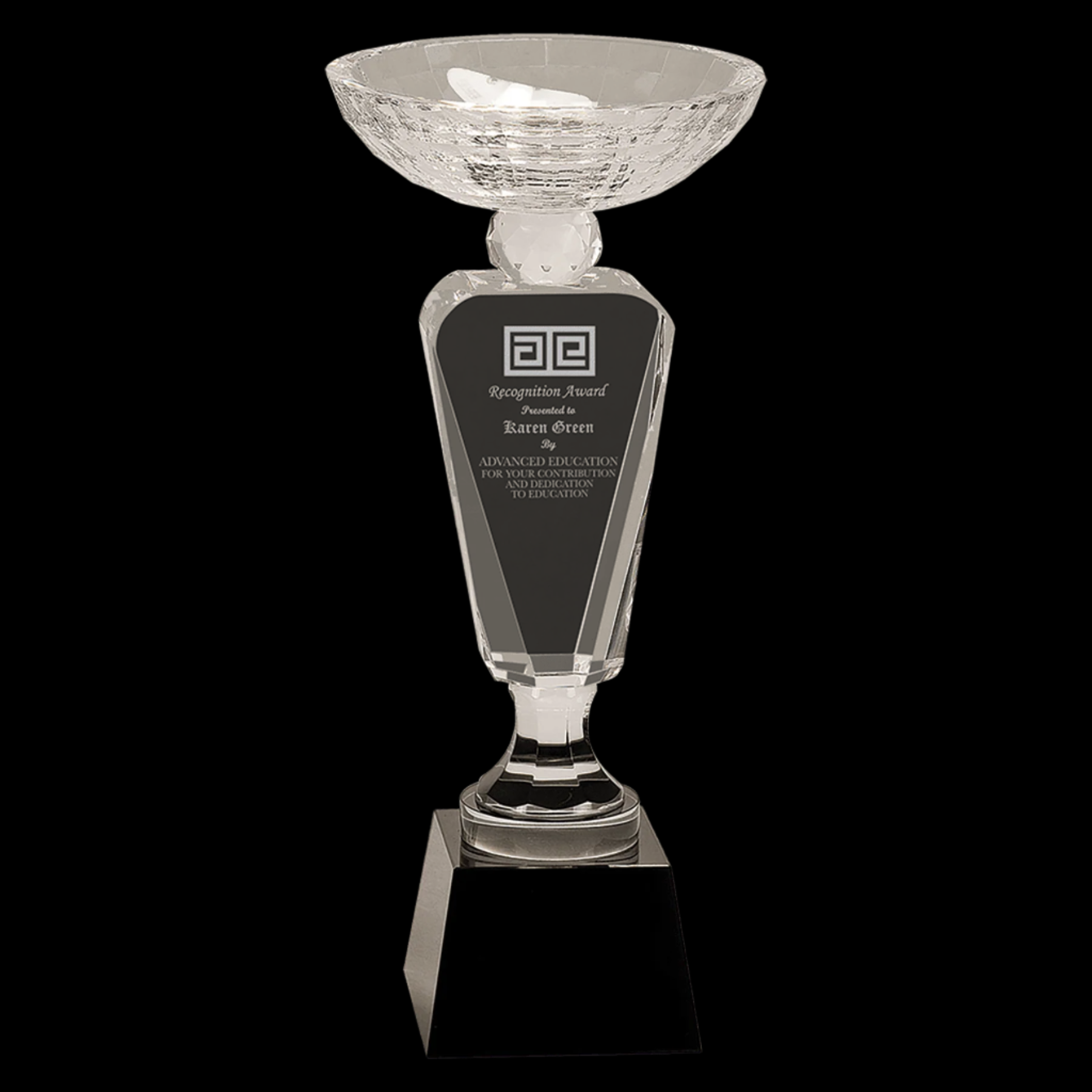 Our Cup Crystal is Handmade and May Vary Slightly in Size. Clear Crystal Cup on Clear Crystal Pedestal is Attached to the Black Crystal Base. Packaged in a Lined Gift Box.