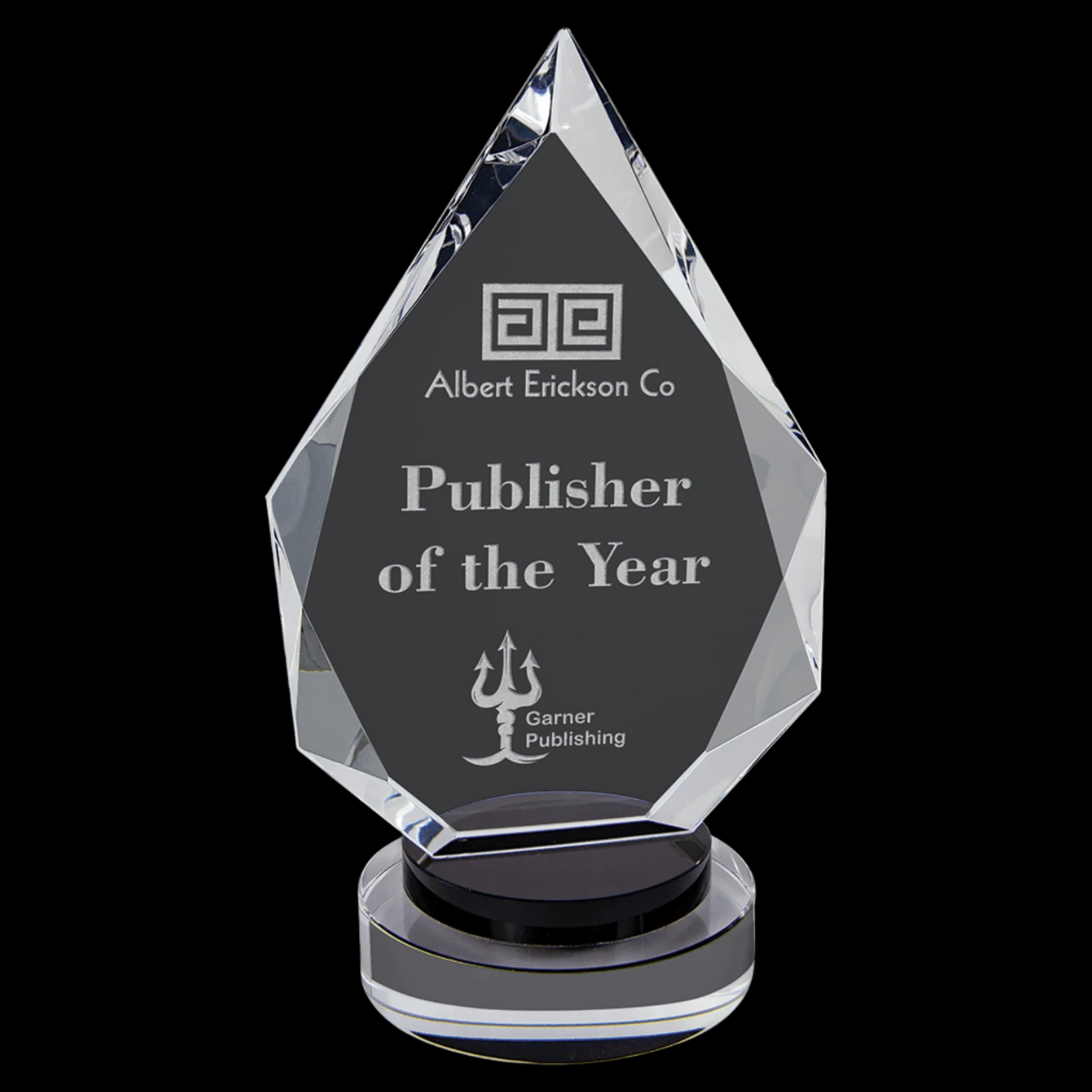 Our Diamond Crystal Award features a handcrafted optic crystal facet diamond set on a sleek black and clear round base. Each piece is unique, with slight size variations that highlight its artisanal quality. Presented in a lined gift box, this award combines elegance and craftsmanship, making it an exceptional choice for recognizing outstanding achievements.