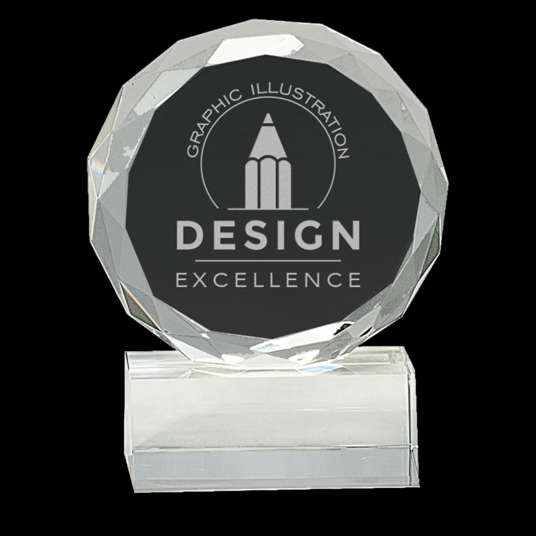 Our 5" Round Facet Crystal Award features a finely crafted optic crystal piece mounted on a clear square edge pedestal base. Each award is handmade, ensuring unique variations in size and detail. Presented in a lined gift box, it offers an elegant and professional recognition piece suitable for honoring outstanding achievements.
