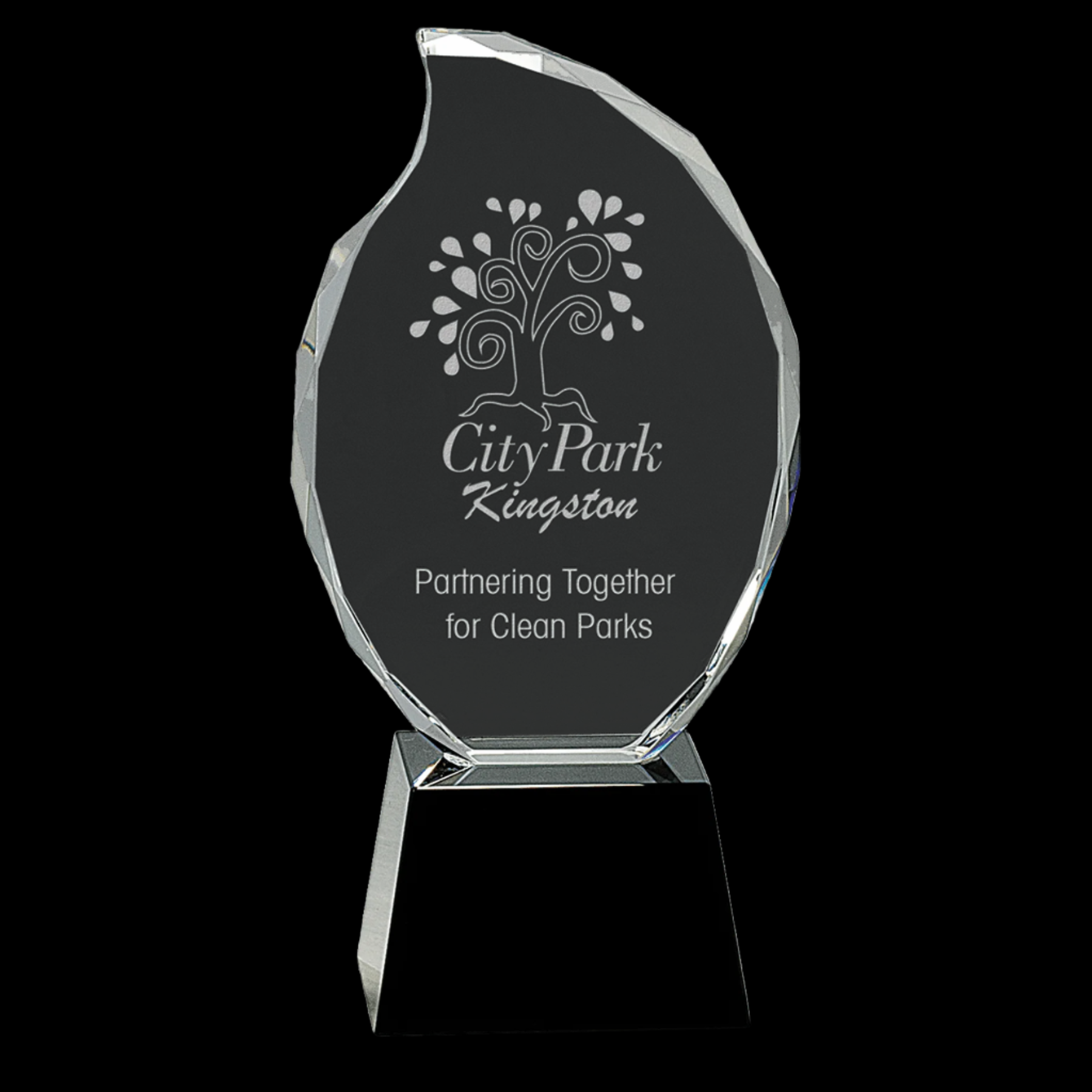Our 9.25" Clear Crystal Flame features a finely crafted optic crystal flame with a decorative edge, mounted on a sleek black pedestal base. Each award is handmade, ensuring unique variations in size and detail. Presented in a lined gift box, it offers an elegant and distinguished way to honor achievements.