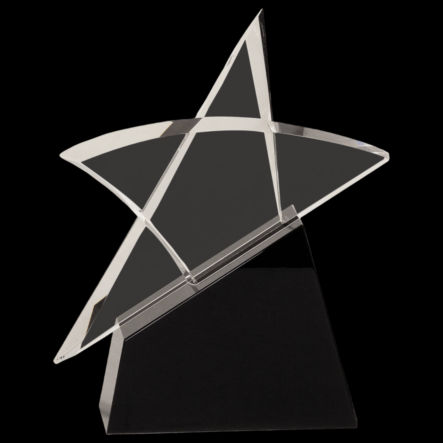 Our Star Crystal is Handmade and May Vary Slightly in Size. Clear Optic Crystal Outline Star Mounted to Black Crystal Base. Packaged in a Lined Gift Box.