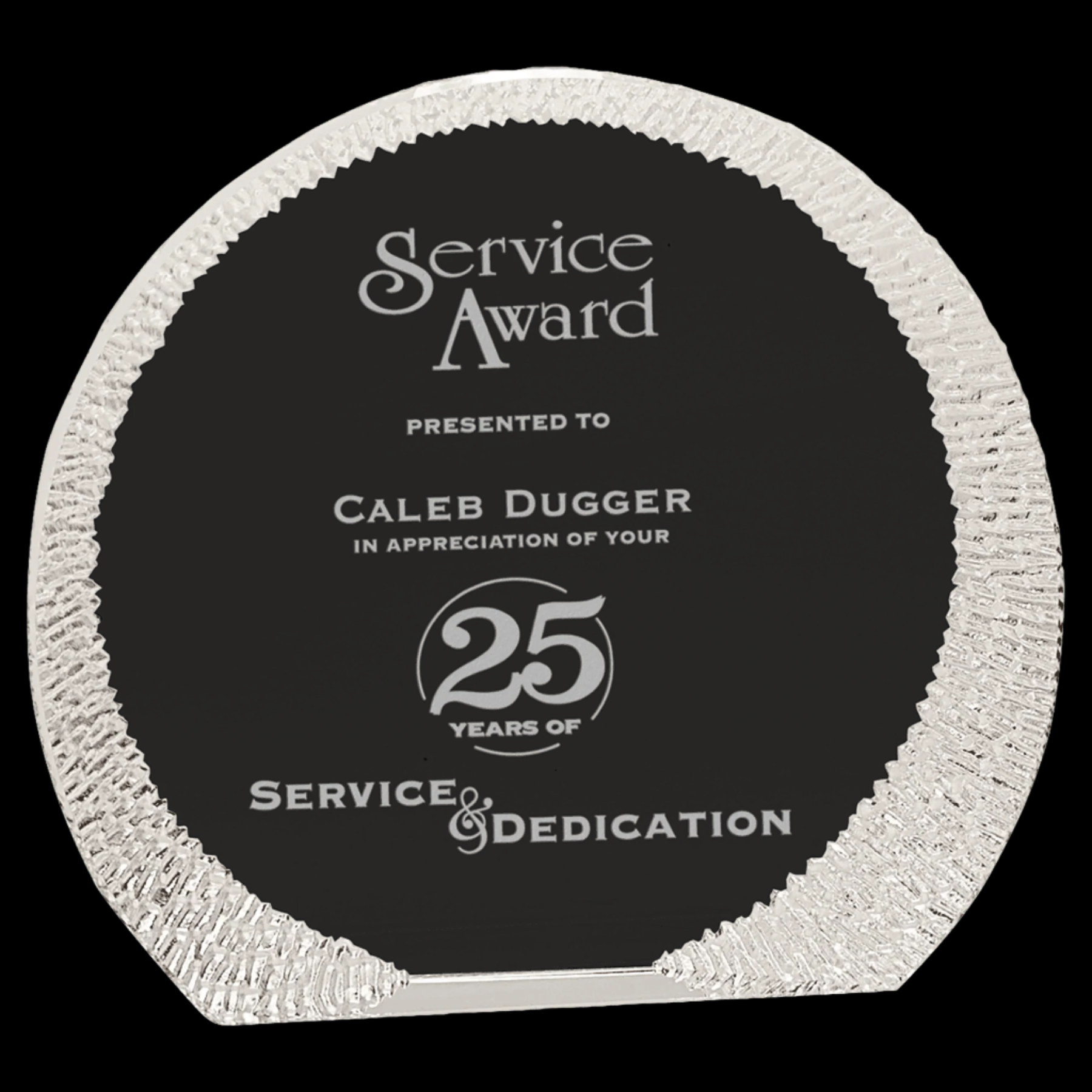 Our 6.25" Rounded Crystal Award features a finely crafted optic crystal with an elegant decorative edge. Each piece is handmade, resulting in slight size variations that highlight its unique character. Designed to stand alone or be mounted on a base, this award arrives beautifully presented in a lined gift box, making it an exceptional choice for recognizing achievement with sophistication.