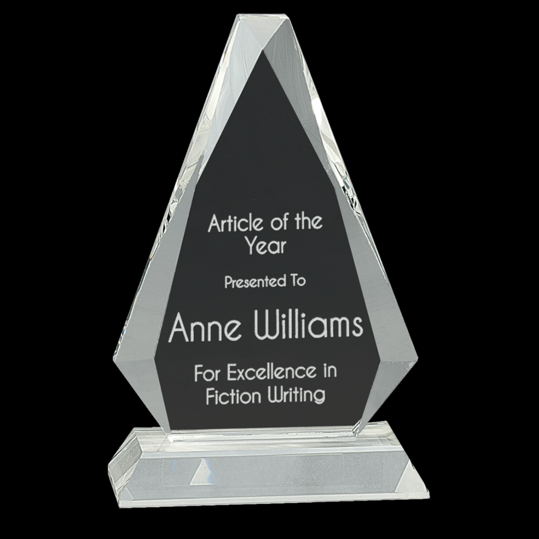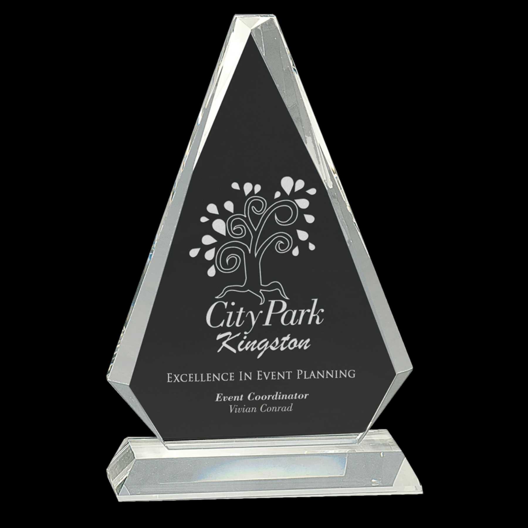 Our Crystal Awards are Handmade and May Vary Slightly in Size. Clear Triangle Optic Crystal Mounted on Clear Pedestal Base. Packaged in a Lined Gift Box.